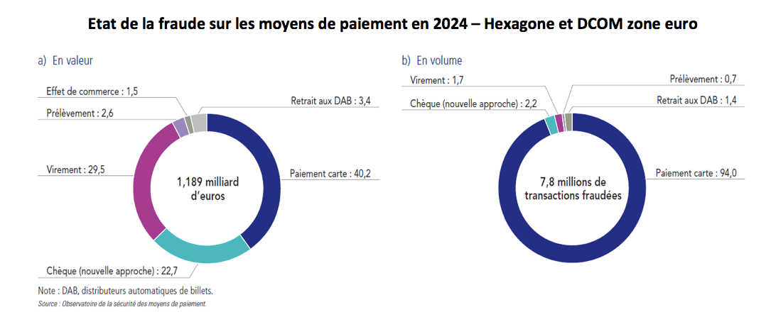 En 2024, la fraude a représenté 1,2 milliard d’euros sur le périmètre de l’Hexagone et des départements et collectivités d’Outre-mer (DCOM) de la zone euro, et 5,4 millions d’euros dans les collectivités françaises du Pacifique (648,4 millions de Fcfp). Si le niveau de fraude s’est stabilisé dans l’Hexagone et les DCOM de la zone euro, il a fortement augmenté dans les Collectivités du Pacifique tout en restant, en pourcentage des moyens de paiement utilisés, en deçà de celui de l’Hexagone.