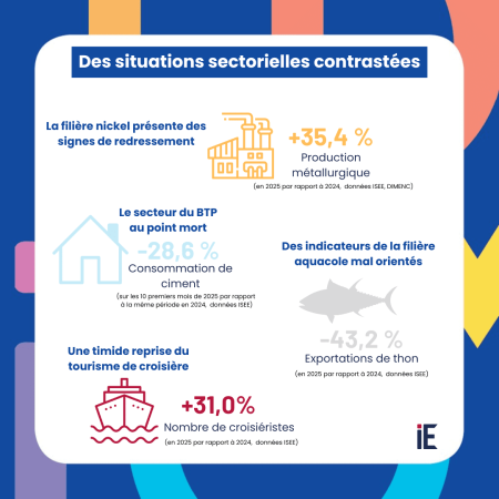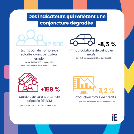 De nombreux indicateurs traduisent cette situation encore dégradée de l’économie calédonienne. L’emploi privé a continué de se contracter en 2025 (-2,1 % entre leT3 2024 et le T3 2025 et -18,4 % sur 2 ans selon l’ISEE).
