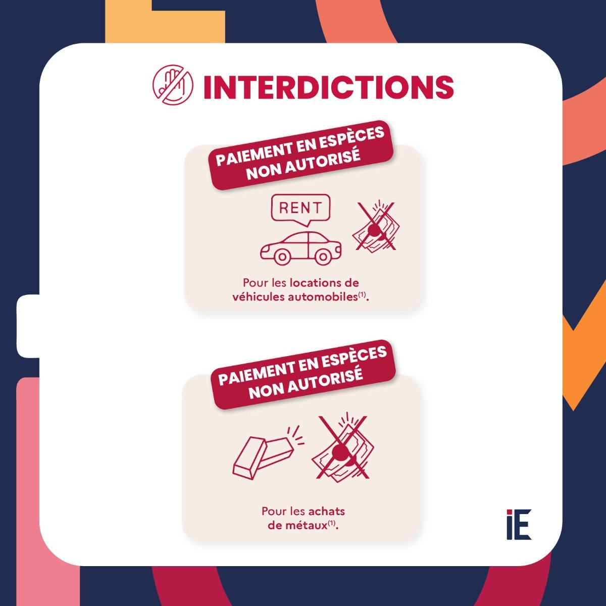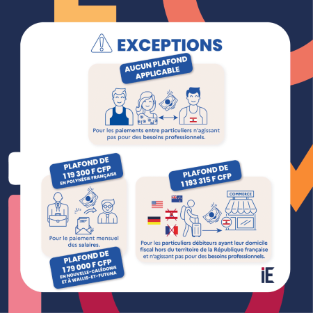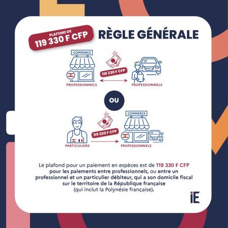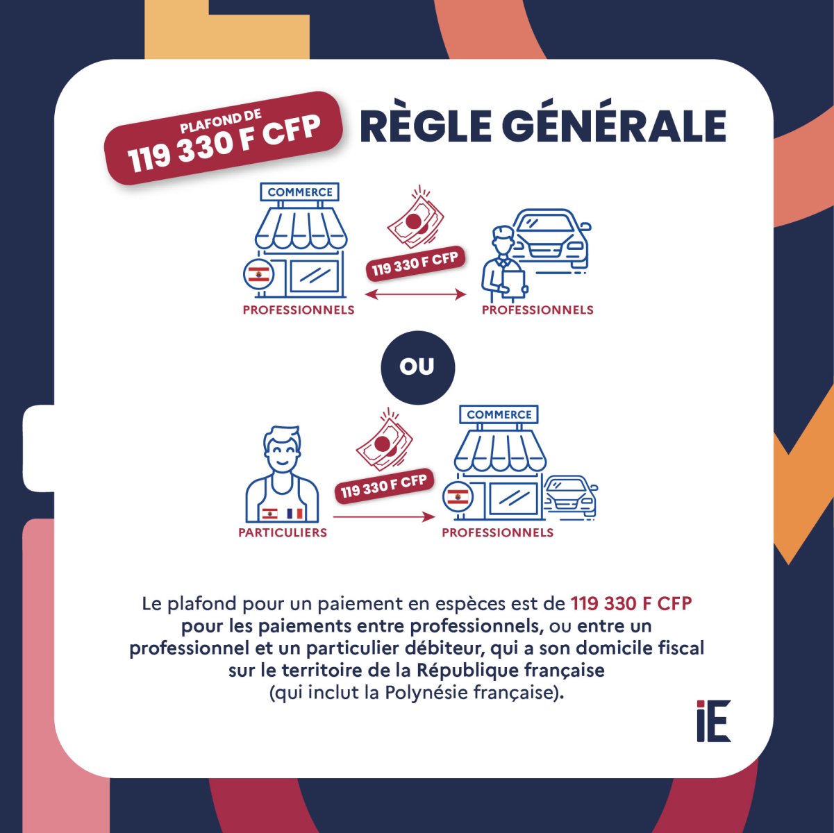 Le plafond pour un paiement en espèces est de 119 330 F CFP pour une transaction entre professionnels ou entre un professionnel et un particulier.